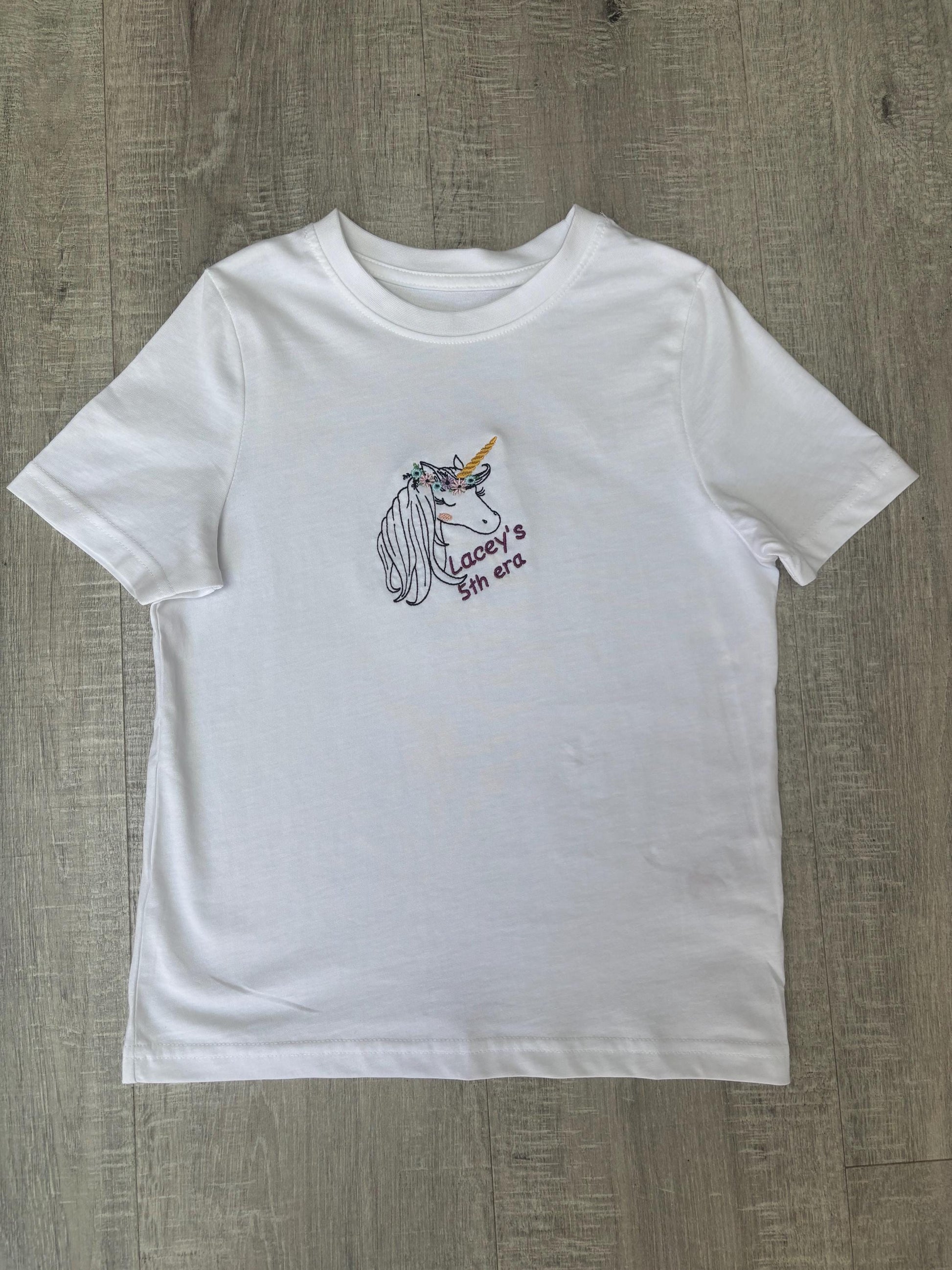Personalised Kids Unicorn T-Shirt | Embroidered Cotton Tee | Custom Name & Age | 1–14 Years | Birthday Gift UK